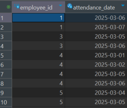 select t.employee_id,t.attendance_date